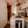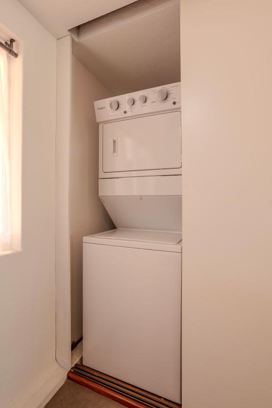 The fully equipped kitchen is a dream for cooking enthusiasts. Sliding doors allow you to separate it from the rest of the condo, ideal for preparing breakfast without disturbing others. You'll also find a washer and dryer in this space — a helpful convenience for longer stays, especially during the winter months.